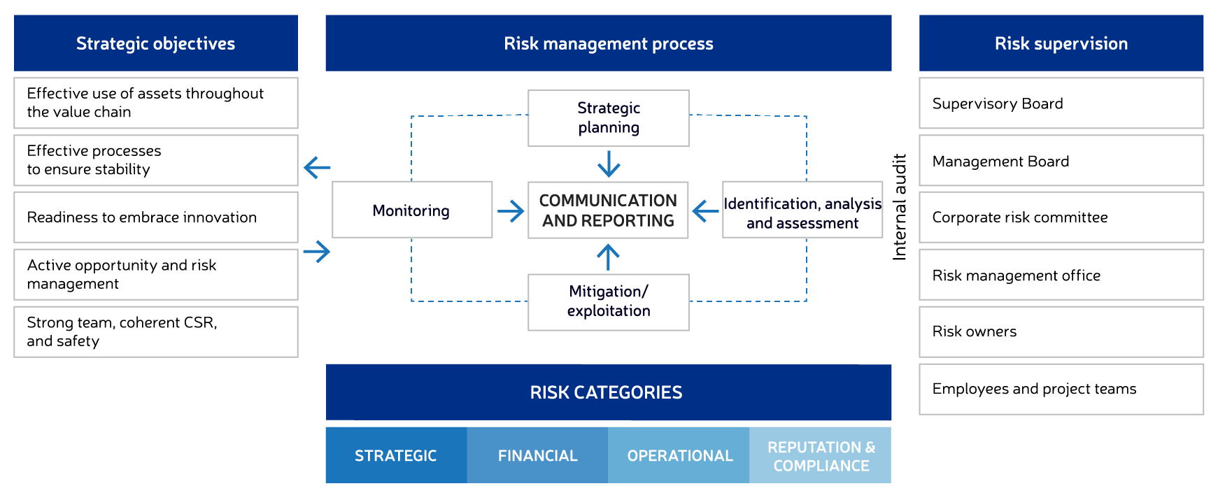 Mechanisms of the risk management model are embedded in the existing business processes. The model comprises three defence lines which are adjusted to the nature of particular activities and the possible impact of risks on the Group’s performance.